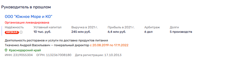 В ООО «Южное море и КО» нам более интересен директор. Одно время там всем рулил Ткаченко Андрей Васильевич - соучредитель сочинского отделения «Молодой гвардии Единой России Сочи (МГЕР).