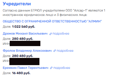 Не менее интересны и партнёры Дремова по мордовского ООО «Алсар-1». В их числе - болгарская фирма Алмин с неизвестными бенефициарами, уже известный Фролов, а также Павел Еремкин — бывший председатель Конституционного суда Мордовской ССР. На сегодня бизнесом занимаются сыновья Еремкина, а например, Игорь Павлович Еремкин и вовсе был главой Мордовского отделения общественной организации «Деловая Россия».