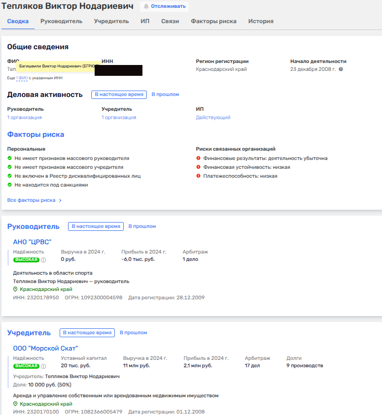 И вот же какое совпадение - дочь Назарета Яланузяна Галина Гусева была совладельцем ООО «Этнический парк», то есть вполне знакома с депутатом Тепляковым. И вот какая интересная особенность - ранее депутат носил фамилию Багишвили. Именно так звали близкого к Деду Хасану человека. якобы правую руку того сама Робсона.
