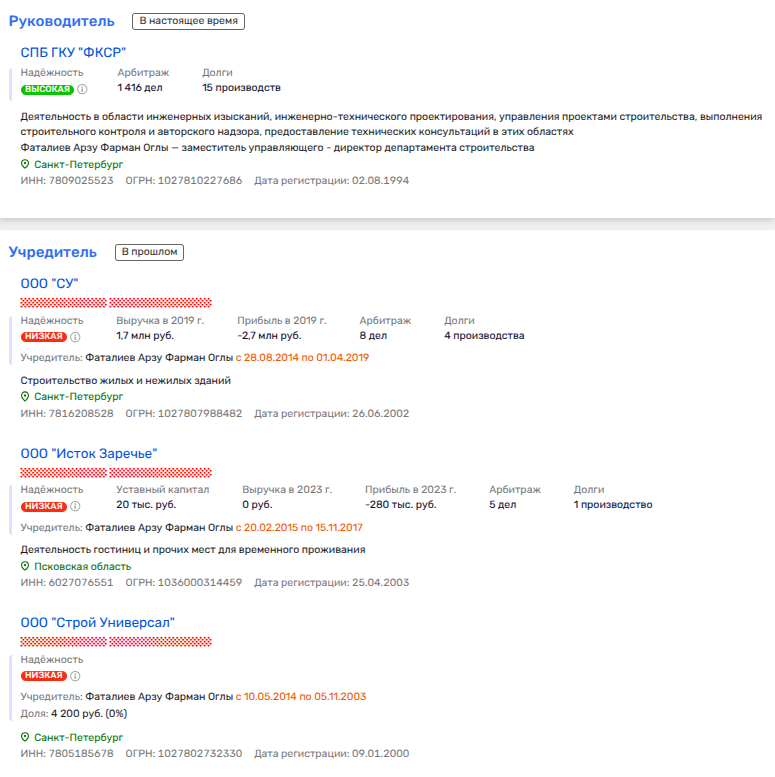 Дело в том, что Фаталиева в кресло главы фонда пропихнул протеже самого Беглова - Игорь Креславский, которого в 2020 году назначили главой комитета по строительству. И что вы таки думаете? Креславский не только занял кресло главного по стройке, но и оставил за собой доли в действующем строительном бизнесе (правда, передал в доверительное управление), коим рулит вместе с матерью - Ниной Креславской и ее мужем - Федором Туркиным. Эта троица владеет несколькими десятками строительных компаний, периодически пуская под нож самые токсичные. Фирмы этого трио получают госконтракты, в том числе и от госучреждений, подконтрольных Креславскому и его коллегам.