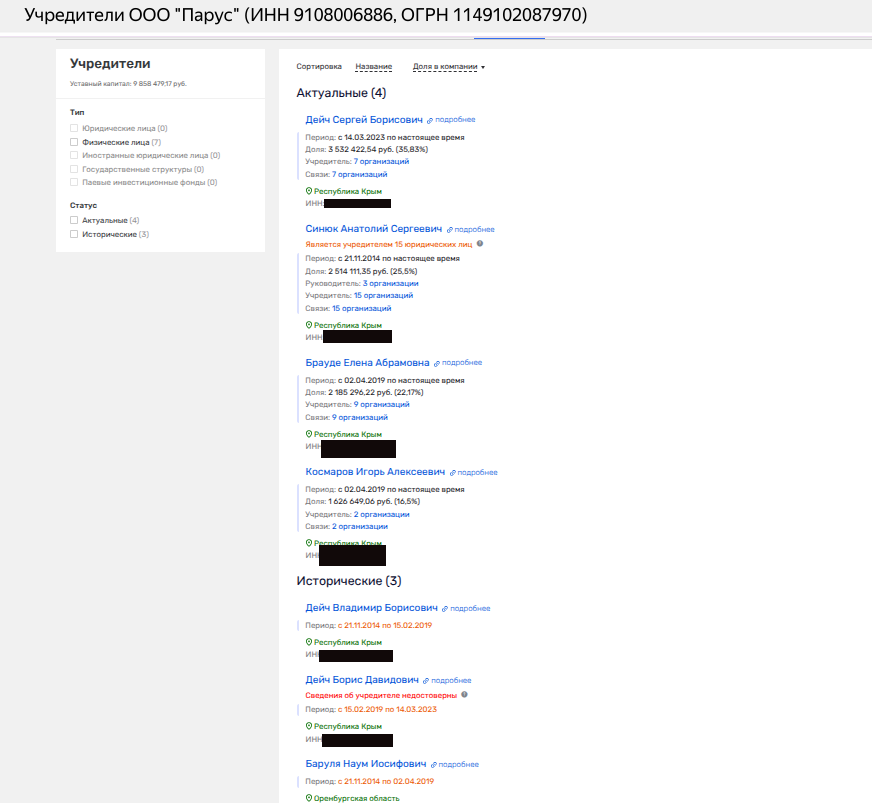При этом после изъятия активов, с оставшимися фирмами Синюка стали твориться интереснейшие рокировки. Например, ООО «Карьер Пролом» он слил фирме, связанной с Дмитрием Сташкивом - президентом Союза недропользователей (Петербург). А в марте 2025 года было продано и ООО СЗ «Минералы Крым». Долю там получил Дмитрий Ткаченко, который в октябре 2021 года некоторое время был заместителем главы администрации г. Судака, а также грел как временщик (врио) кресло главы города, до того успев побывать начальником отдела капитального строительства администрации Судака. Именно в Судаке Синюк, Дейчи и Баруля заякорили свои активы.