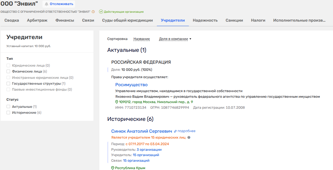 Так, в 2024 году в доход государства были изъяты две фирмы - кубанское строительное ООО «Тандем» и гостиничное ООО «Энвил» из Симферополя.