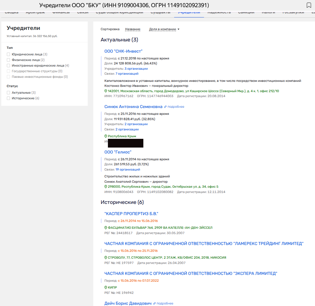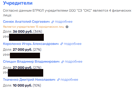 Более того, Синюк и Ткаченко имеют доли в общем бизнесе - ООО СЗ «СКС» до сих пор.