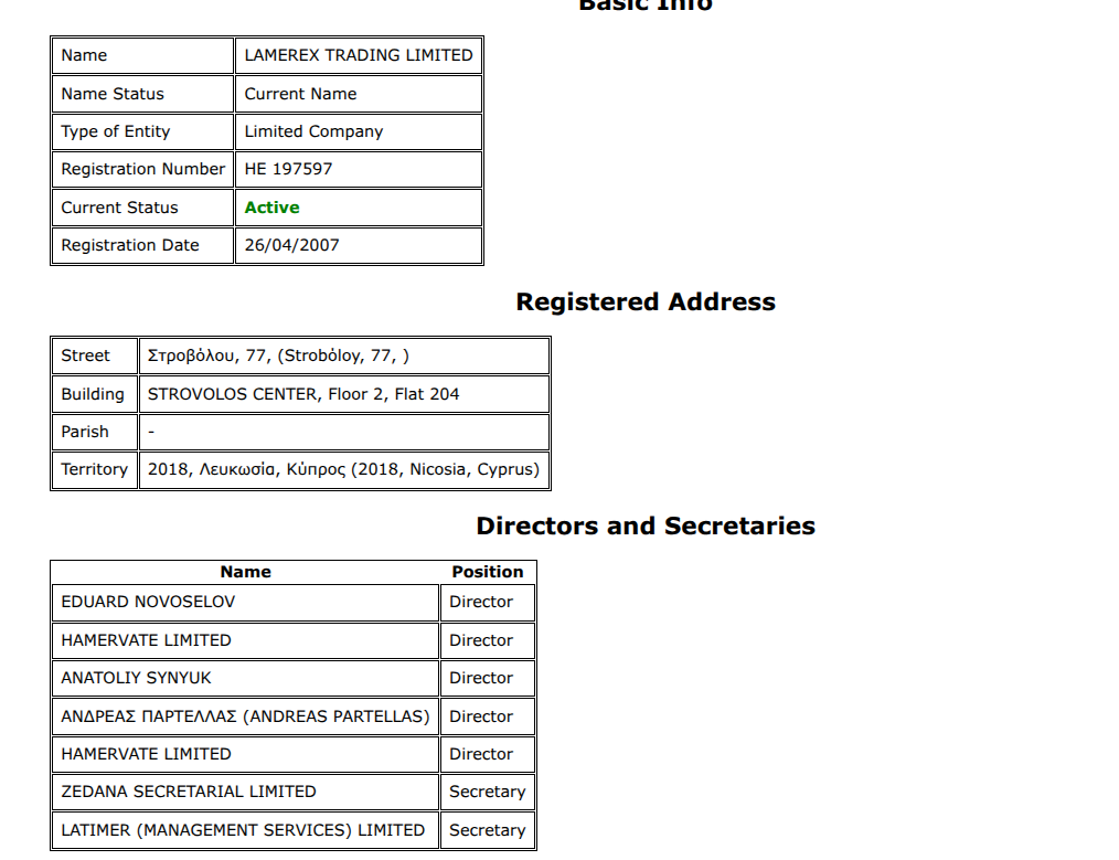 Было в анамнезе Дейчей и Синюка еще и кипрское LAMEREX TRADING LIMITED, где директор - ANATOLIY SYNYUK и некий Эдуард Новоселов (EDUARD NOVOSELOV) - тезка менеджера практики PwC по оказанию услуг частным компаниям и частным клиентам.