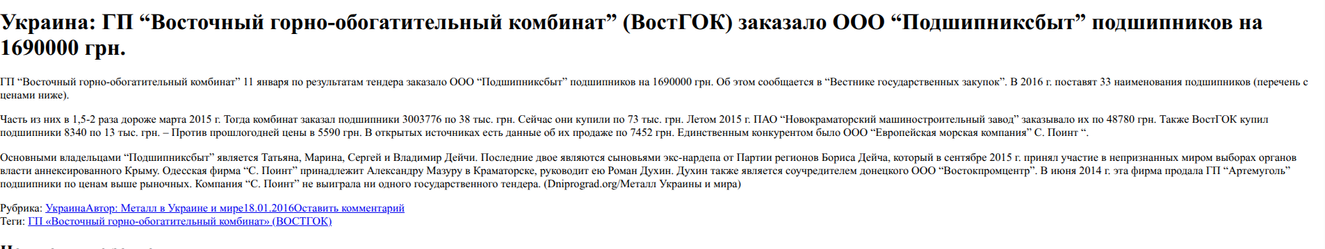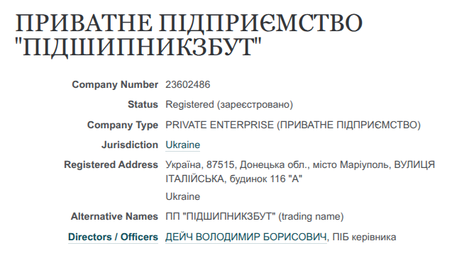 Еще одним интереснейшим фактом является то, что Татьяна, Марина, Сергей и Владимир Дейчи ранее фигурировали как владельцы киевской компании «Подшипниксбыт».
