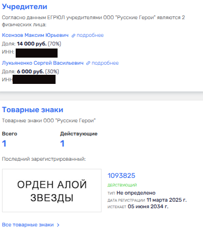 Ксензов вместе с Лукьяненко владеют фирмой по производству фильмов учрежденной в июне 2023 года в Москве - ООО «Русский герой». При этом у Ксензова - 70% доли и, вероятно, именно его связи обеспечили годовой выхлоп в 15 млн рублей, что для малоизвестной свежесляпанной фирмочки довольно хороший результат.