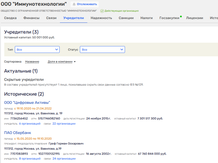 Фирма оценивается почти в 0,5 млрд рублей и является поставщиком госконтрактов Минздрава РФ, но при этом скрывает владельцев. Ранее в числе владельцев был Сбербанк и связанное с ним ООО «Цифровые активы». Более того, до Ксензова директором ООО был также выходец из дивизиона Сбера - бывший руководитель «Сбермедии» Сергей Жданов.