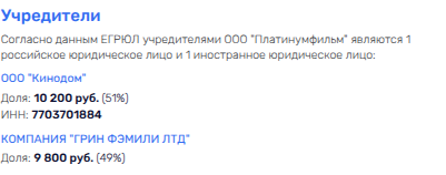 А вот российская кинокомпания «Платинумфильм», которую связывали с Зеленским, никуда не делась из портфеля Green Family Ltd. Та по-прежнему владелец 49% доли в «Платинумфильм». Оставшаяся часть у компании «Кинодом» Сергея Бобзы, на которой ранее был зарегистрирован товарный знак Leopolis. И вот же какое совпадение: ООО «Леополис-Менеджмент» - еще одно аффилированное с Зеленским российское юрлицо. Именно кинокомпания Леополис снимала несколько фильмов, где играл Зеленский.