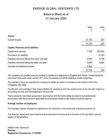 Теперь контролирует проект Смбатян, не забывая грести капиталы и в России, используя свои связи в верхах. Уже в январе 2025 года капитал фирмы с 287 фунтов резко вырос до 31 745 фунтов стерлингов. Российские транши поспособствовали?