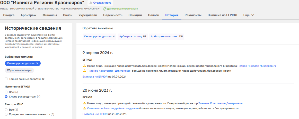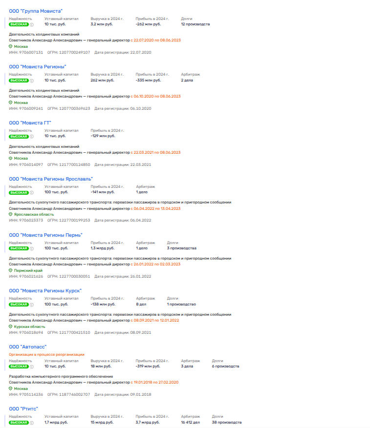 Помимо этого, Советников был директором большинства дочерних активов «Мовисты», включая и ООО «Мовиста Регионы Красноярск». И в последнем он пост, судя по данным Руспрофайл, покинул лишь в конце июня 2023 года, то есть спустя месяц после задержания.