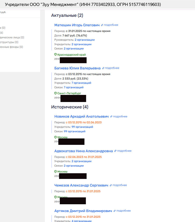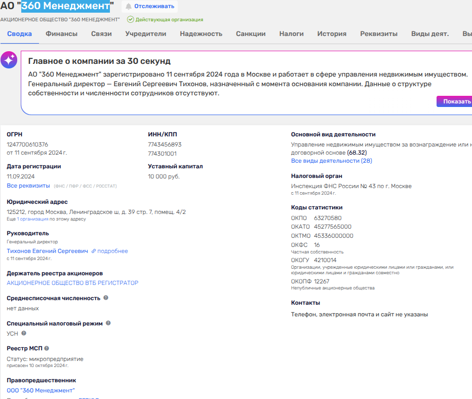 Итак, управляет ППО - АО «360 Менеджмент». В сентябре 2024 года АО трансформировалось из одноименного ООО и в АО стали скрывать владельцев. Но, судя по тому, что прописано АО вместе с ООО «Супернова Энерджи» Алексея Васина, владевшего долей в ООО «360 Менеджмент», то вряд ли конечные игроки компании-управленца сменились.