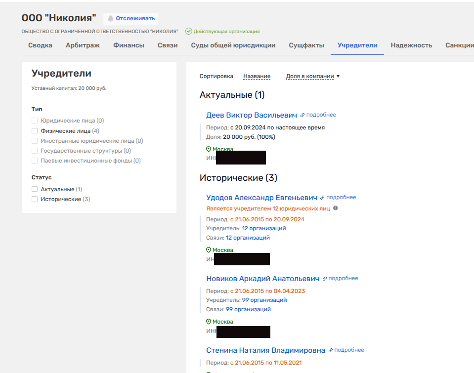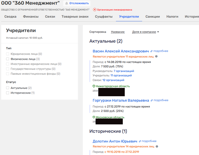 Так, совладельцем в ООО «360 Менеджмент» была Наталья Горгураки, которая также имеет долю в ООО «Дайнинг», где ее партнером - известный ресторатор Аркадий Новиков.