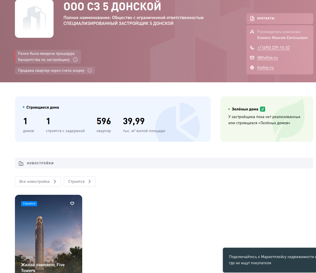 При этом директором ООО СЗ «Донской 5» недальновидный Мусатов назначил известного на всю Москву Максима Блажко - бывшего владельца Донстроя, некогда бывшего крупным игроком на рынке строительства, но потом громко лопнувшего. Дело дошло до того, что основанный Максимом Блажко и Дмитрием Зеленовым девелопер отошёл за долги госбанку ВТБ Андрея Костина.