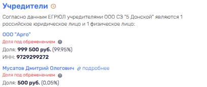 Что интересно, сам Мусатов, оформлявший ИНН в Калининградской области, владеет только ООО СЗ «Донской 5» и ООО «Арго», да и бизнесом начал заниматься лишь в 2022 году.
