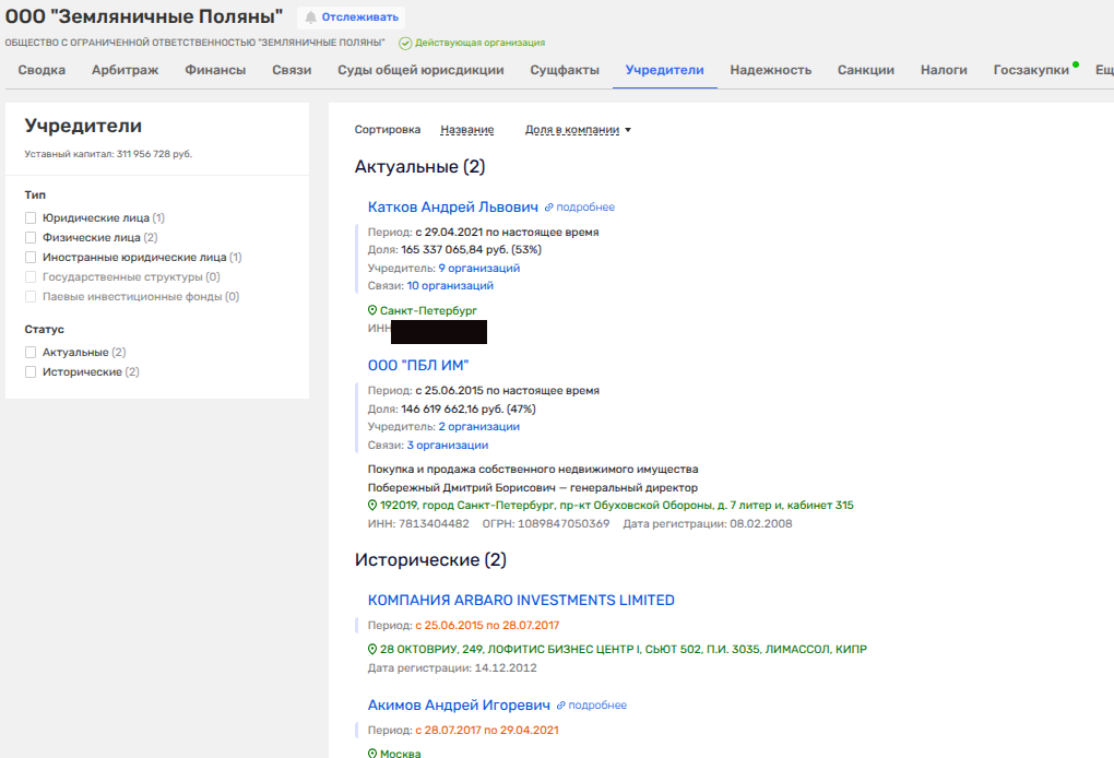 И вот какой интересный факт: совладельцем ООО «Земляничные поляны» является как раз таки олигарх Андрей Катков. Второй владелец - компания «ПБЛ ИМ», которая принадлежит гонконгской ПИ.БИ.ЭЛ. ГОНКОНГ ЛИМИТЕД.