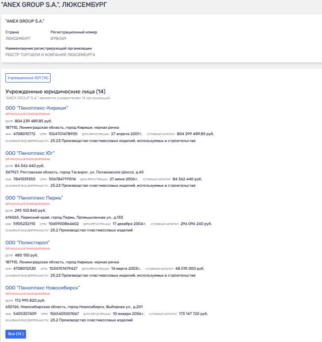 Кстати, Катков весьма лоялен к офшорам. В его бизнесе долгое время фигурировало люксембургское ANEX GROUP S.A., которое и владело многочисленные (ныне ликвидированными) дочками Пеноплэкса.