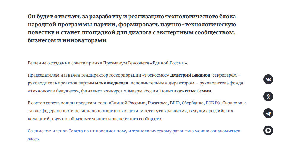 На днях единороссы сообщили, что 30-летний сынок того самого Димона назначен секретарём созданного партией совета по инновационному и технологическому развитию. За мальчиком с ленцой, которого на прошлых работах в офисе практически не видели, в качестве начальника будет наблюдать глава «Роскосмоса» Дмитрий Баканов. В целом весь совет - перепись министров, госкорпораций и ит-компаний с оборотами госконтрактов на миллиарды, а также госбанков.