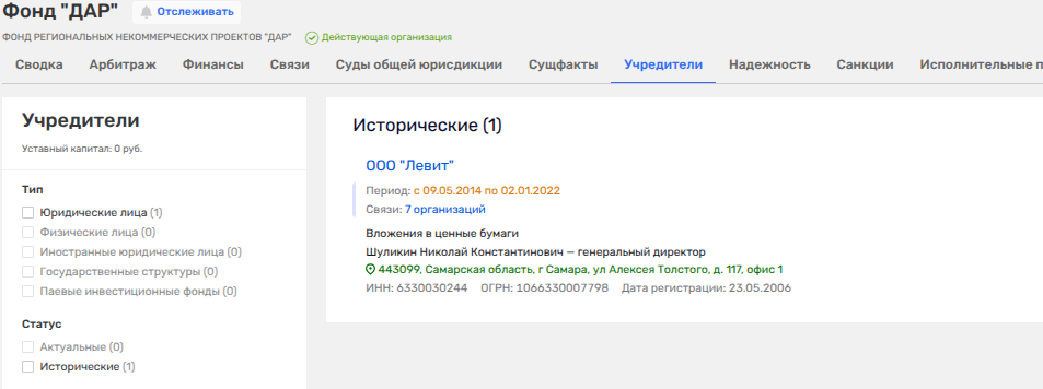 Но и это далеко не всё: вышеуказанный Виталий Головачёв также был ранее руководил фирмой «Орион», которая принадлежит фонду Дар! Учредителем же последнего фигурирует уже знакомое нам ООО «Левит» Михельсона и Симановского, которые активно жертвуют в кубышку этого фонда. Как оказалось, связанного с винодельческим бизнесом, далеко не чужим Медведеву-старшему, да и младшему.