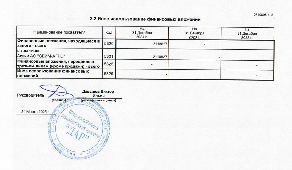 Если смотреть в отчет фонда Дар за 2024 год, то обнаружим, что он, помимо прочего, еще и акции скупает. Например, ему принадлежат акции некоего АО «Сейм-Агро», а также некоторое имущество, намекающее на лыжные трассы, и земельные участки.