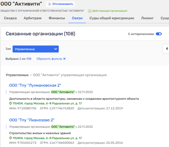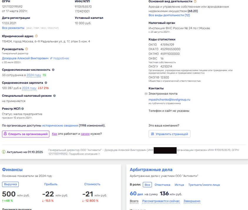Управляет этой фирмой ООО «Активити», которое в 2022 году скупило у государственного Мосинжпроекта сразу два юрлица с прицелом на развитие ТПУ и получение госземли - ООО ТПУ «Лухмановская 2» и ТПУ «Лианозово 2». Обе фирмы на сегодня убыточны, как и само «Активити», показавшее по итогам 2024 года чистый убыток 22 млн рублей при выручке на 0,5 млрд рублей. Возникает вопрос, а куда, собственно говоря, уплыли капиталы?
