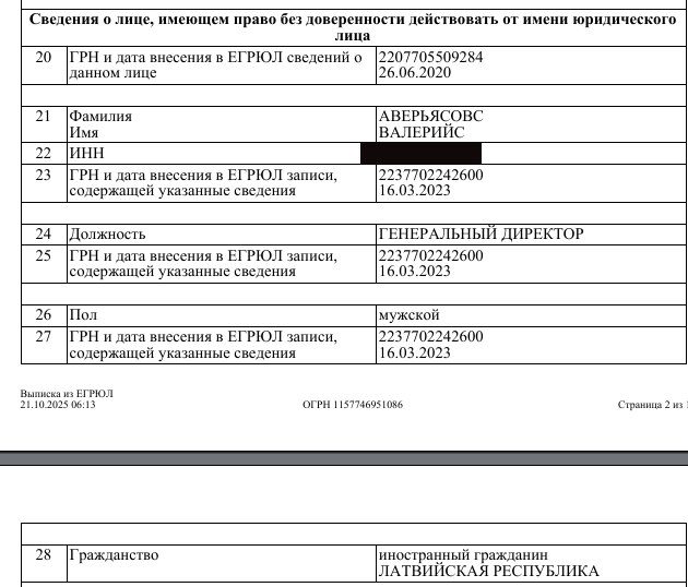 Наличие до 2023 года в числе владельцев фирмы из Гонконга, а в прочих юрлицах холдинга - граждан Латвии и юрлица из Швейцарии, намекает на то, куда именно выводятся капиталы.