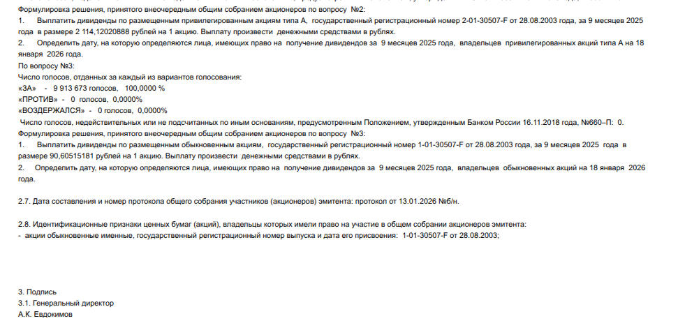 А теперь следите за руками: на 22 января 2026 года назначено заседания совета директоров, на котором будут прекращены полномочия Евдокимова как гендиректора и избран новый руководитель.
