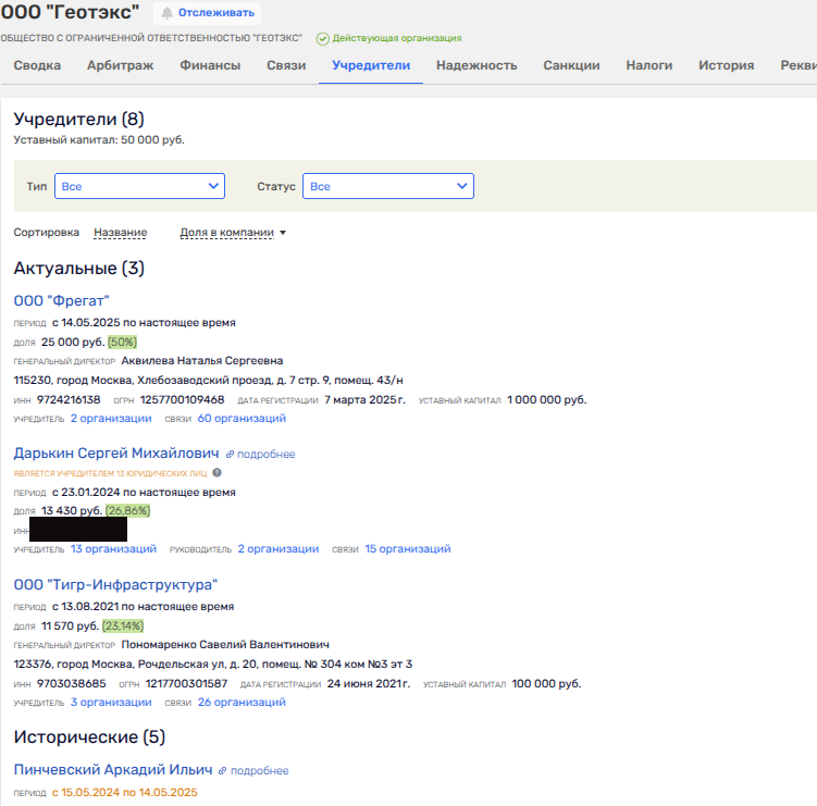 А вот выкупная сделка с долями Сергея Дарькина и связанных с ним юрлиц оценивалась в рублевом эквиваленте на 34 млрд рублей. В контур сделки в сентябре 2025 года предлагалось включить 26,86% долей Сергея Дарькина в московском ООО «ГЕОТЭКС» - акционере порта с долей 51,9% и 23,14% долей в «ГЕОТЭКСе», которыми владеет ООО «ТИГР – Инфраструктура», связанное с женой Дарькина Белобровой. Во всех случаях покупатель сам порт.