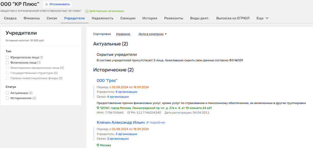 При этом уши Клячина и Сбера в ООО «КР Плюс», на которое выкупалось имущество, стали прятать - через запрет отображать в ЕГРЮЛ владельцев.