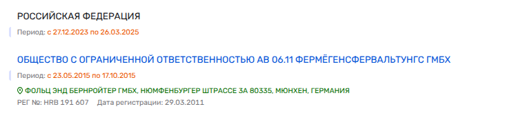 Также среди владельцев компании «Юг Девелопмент» мелькнула и немецкая компания - АВ 06.11 ФЕРМЁГЕНСФЕРВАЛЬТУНГС ГМБХ.