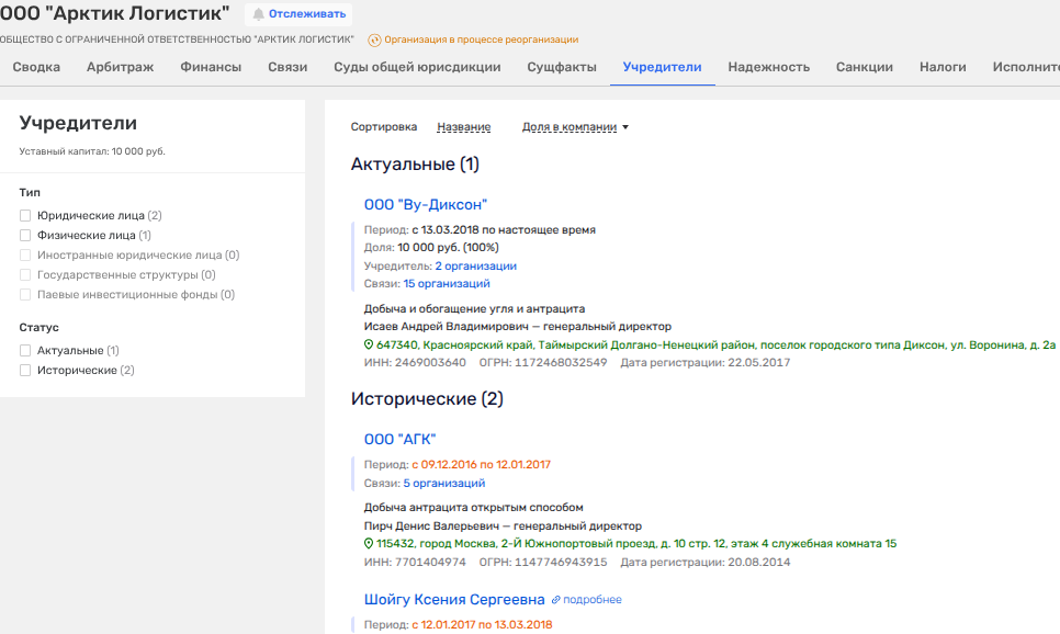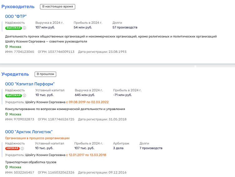 На сегодня Ксения Шойгу официально является руководителем Федерации триатлона России, но в ее биографии, помимо бизнеса с Демченко, был и иной актив. Так, в 2017-2018 годы ей принадлежала доля в ООО «Арктик Логистик». При этом доля ей перепала от ООО «АГК» с весьма и весьма примечательными персонажами.