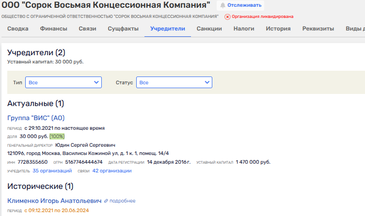 Кстати, Игорь Клименко имел также общий бизнес с такой скандальной кубышкой, как группа ВИС, чьи бенефициары, включая Игоря Снегурова, весьма лояльна к офшорам. При этом ВИС - это крупный концессионер с портфелем на миллиарды рублей.
