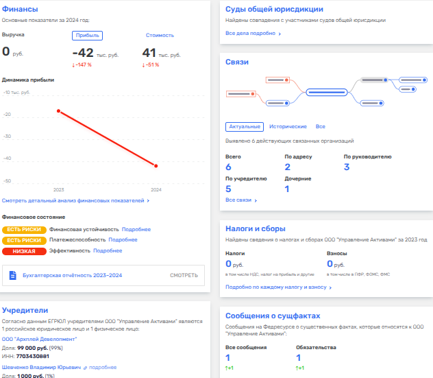С учетом, что владельцем ООО «Управление Активам» является компания «Архплей Девелопмент», где у Игоря Чайки есть существенная доля, не удивительно, что рядом нарисовался и Греф с кошельком бюджетных миллиардов. Ведь у самого «Архплей Девелопмент» за 2024 год выручка была нулевой.