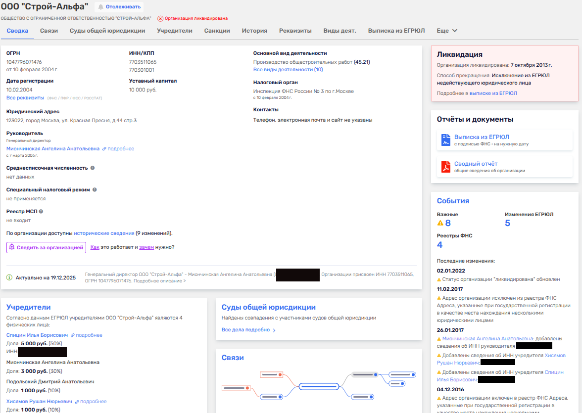 Сейчас Спицин, с которым Долина сообща владела ООО «ЛД Студио» (ликвидировано в 2014 году), а ее дочь - Ангелина Миончинская - ООО «Строй-Альфа», глава целых трех юрлиц в хоккейной сфере.