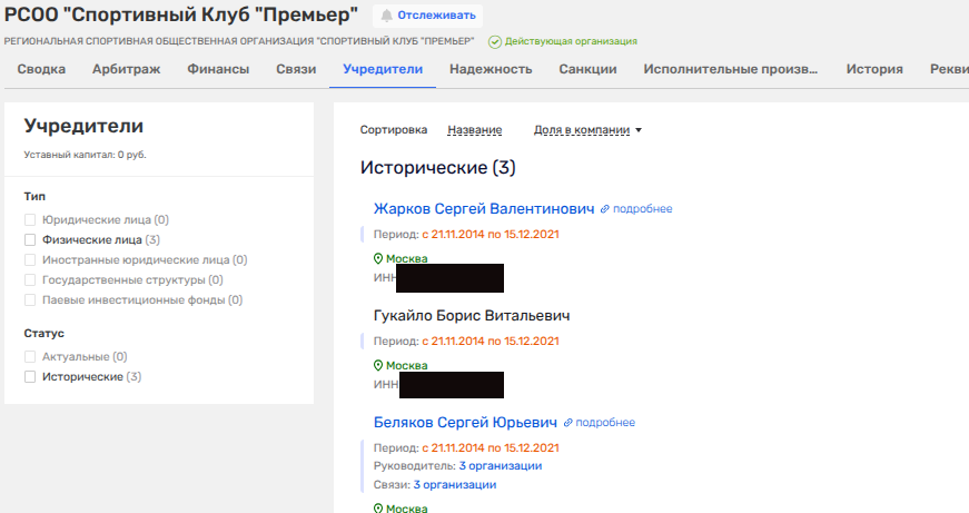 Там же в числе соучредителей и Сергей Беляков - тёзка бывшего замминистра экономического развития РФ, президента Национальной ассоциации негосударственных пенсионных фондов (НАПФ) с 2021 года.