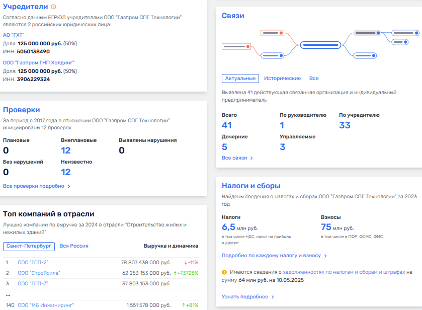 ООО «Газпром СПГ технологии» принадлежит ООО «Газпром ГПН Холдинг» из структур Газпрома (50%) и АО «ГХТ» (также должник по налогам - 8,6 млн рублей). Последнее уже пару лет не раскрывает акционеров, но на начало 2023 года среди них была пара юрлиц, в том числе ООО «Стратегия 354» Алексея Кахидзе.