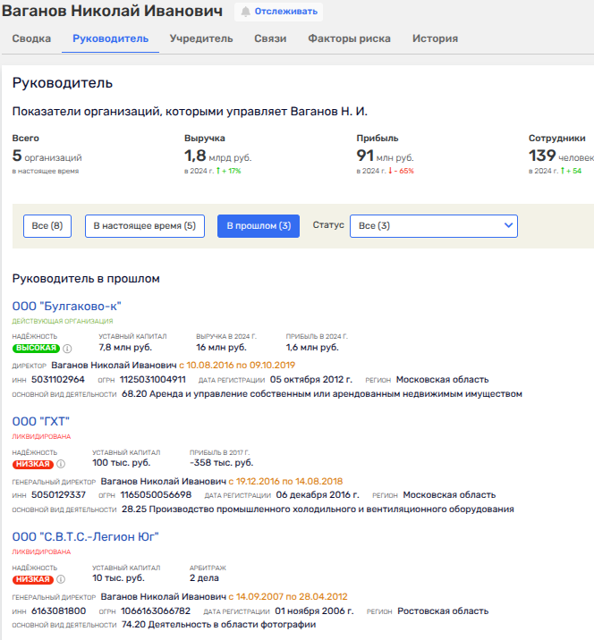 И самое интересное, что у этих фирм один директор с ГХТ - всё тот же Ваганов. Явно очень доверенное лицо Кахидзе. Ведь именно на него было оформлено ГХТ, когда ещё было в формате ООО.