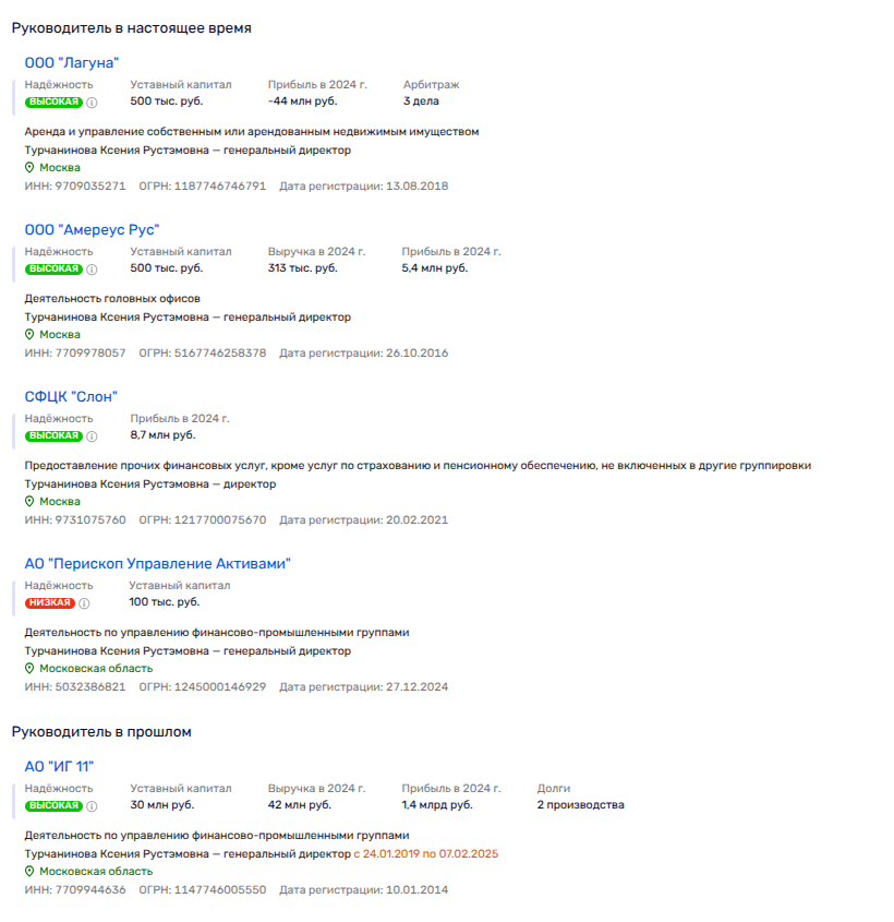 Помимо этого, Ксения Турчанинова - директор некоего мутного СФЦК «Слон» по управлению активами. Учредителем оного выступало ООО «Си-ЭФ-Си Менеджмент», на старте которого наследил Антон Елистратов - бывший гендиректор Самолета. Как вам такой расклад?