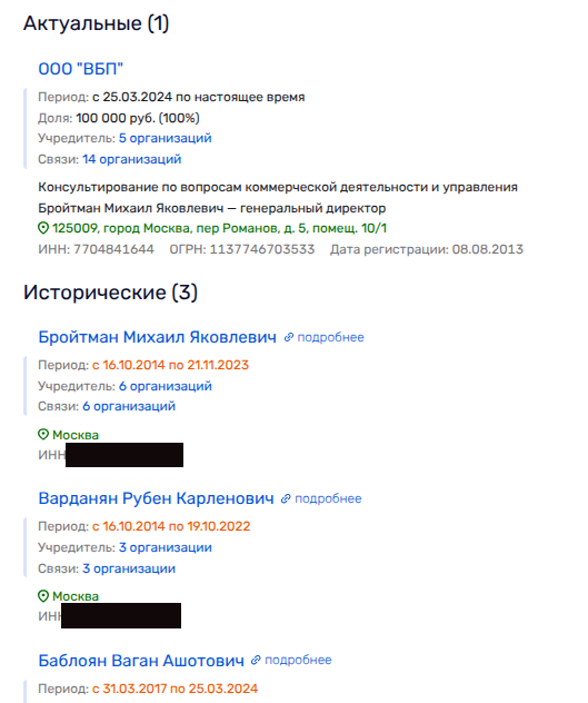 Более того, Бройтман, Баблоян и Варданян вместе фигурировали как владельцы компании «Форт».