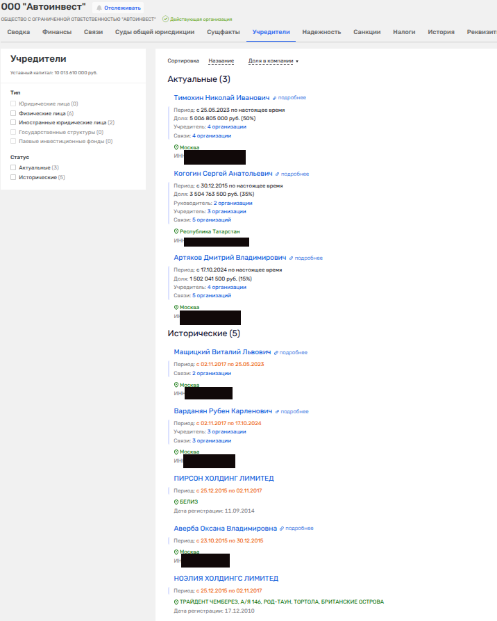 При этом и Варданян, и Машицкий вместе с Чемезовым фигурировали как учредители ряда юрлиц, в том числе Союза ОИР «Клуб Времена Года». Там же можно увидеть и прочих олигархов из списка Форбс, а также правую руку генерала Чемезова, бывшего самарского губернатора Владимира Артякова, чей сын вместо Варданяна стал совладельцев доли в «Автоинвесте».
